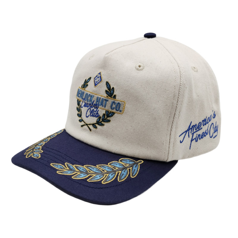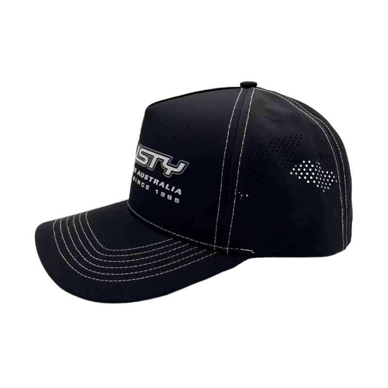Crown: 6 panel structured front with hard fusing interlining, 6 stitching eyelets.